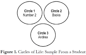 In order to listen to what students have to say and share I proposed a very interesting activity that enabled me to get excellent results. I asked students to draw three big circles. In the circles, they had to write about the most significant aspect of their lives. For example in Circle 1, they had to write the most meaningful number for them; in Circle 2, the object they could not live without; in Circle 3, the most important name for them.