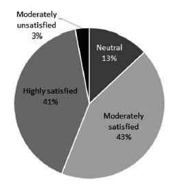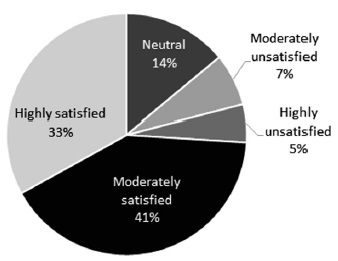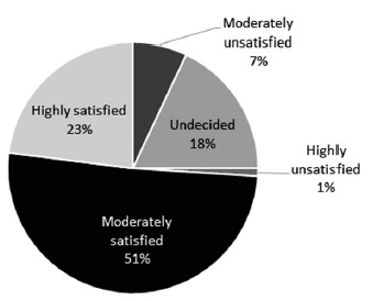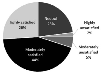 Figure 2 indicates how the strong trend towards high satisfaction continues in this category. Students indicated they are satisfied with their performance, acknowledging they have adequate support in the program. Classes are perceived as communicative and learners are given ample opportunities to participate in class, which ensures sufficient input and interaction to advance their L2 knowledge. The methodology courses are perceived to be well organized and provide an important foundation for the students’ future professional practice. The environment is conducive to interaction and students have positive feelings towards the institution.